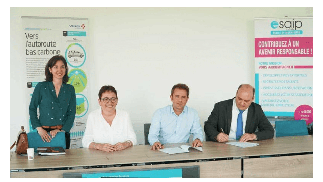 Le 03 mai 2023, Vinci et l’Ecole d’Ingénieurs Esaip ont signé un partenariat. Il a pour objectif de renforcer les liens entre l’Ecole et Vinci, au service des étudiants de l’Esaip. Il se concrétisera par l’intervention d’experts de Vinci Autoroutes sur des thématiques liées à des sujets environnementaux et numériques. Les étudiants pourront, par ailleurs découvrir les métiers et différents sites d’exploitation de l’entreprise.