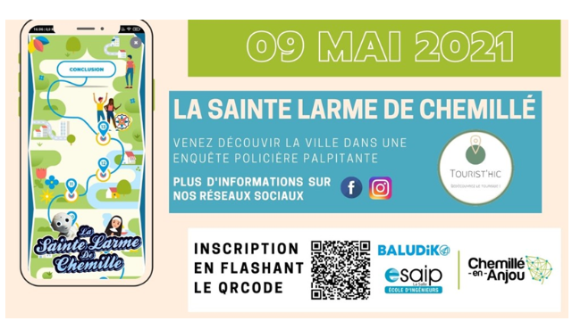 Venez jouer gratuitement à La Sainte Larme de Chemillé ! Un parcours de 2 heures environ, accessible à tous les âges et disponible sur téléphone ou sur tablette ! Nous serons ravis de vous voir nombreux ! Venez profiter d'un outil ludique et innovant pour découvrir la ville, son histoire et son patrimoine.